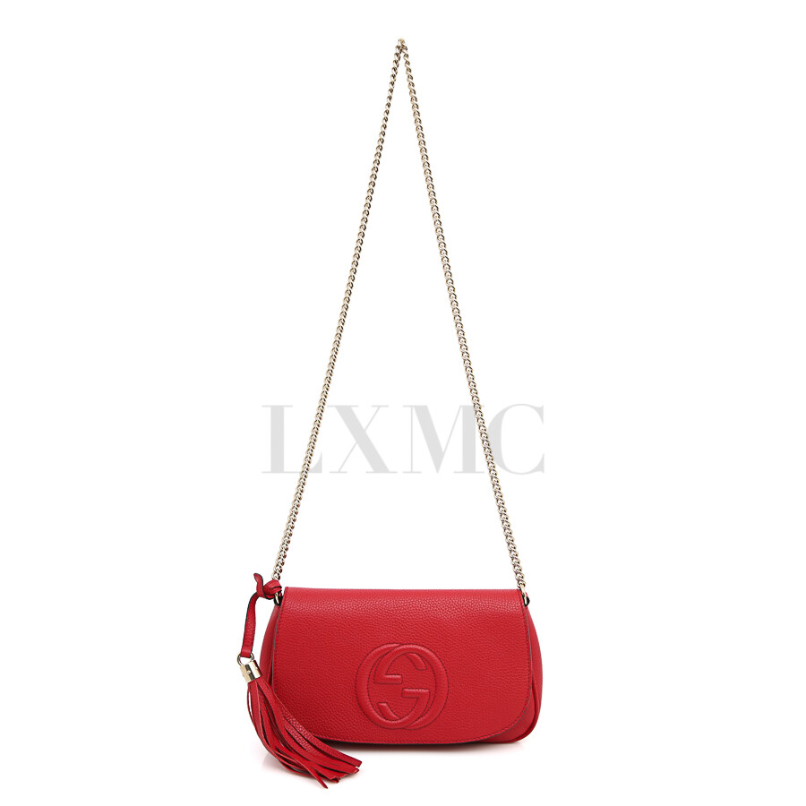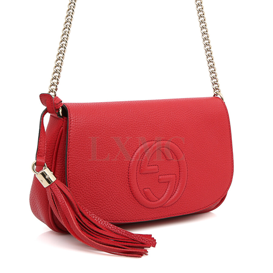 구찌 소호 테슬 체인 크로스백 536224 레드 금장 플랩백.