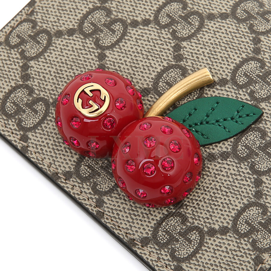 구찌 GG 수프림 캔버스 체리 장식 카드 케이스 지갑 476050.