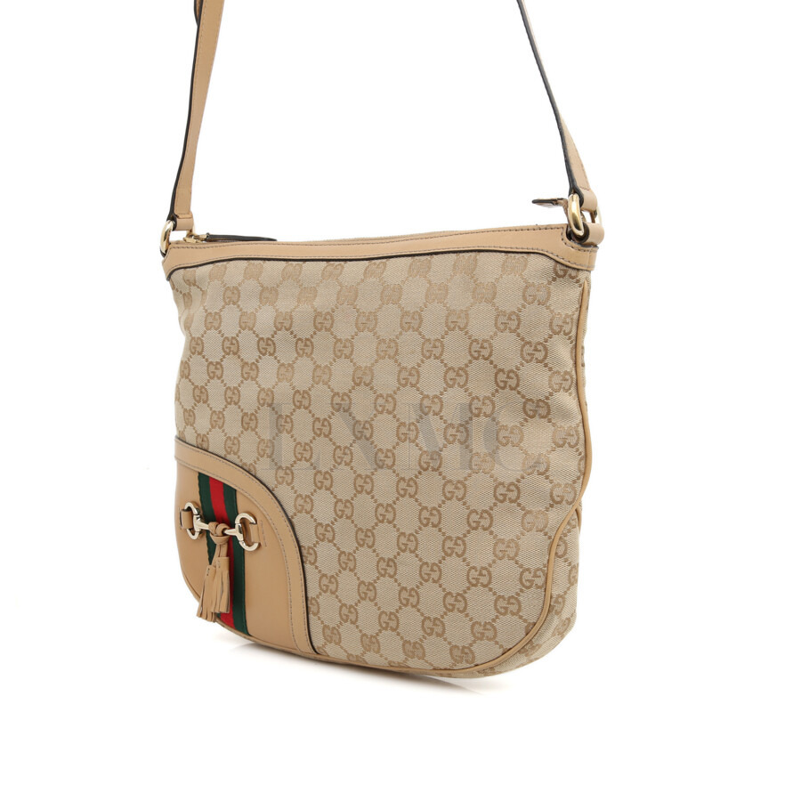 구찌 베이지 GG 쟈가드 캔버스 테슬 삼선 크로스백 232967.