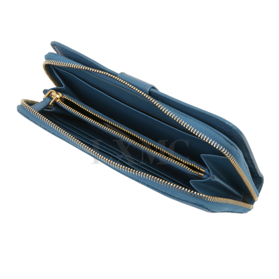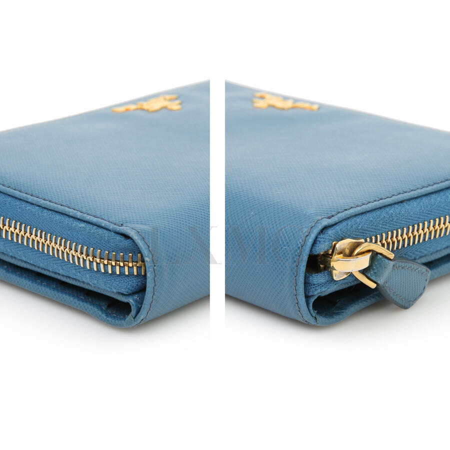프라다 1M1348 사피아노 메탈 블루 지퍼 장지갑.