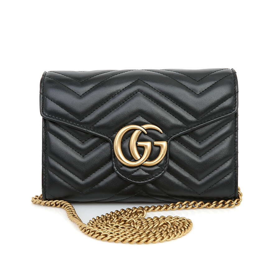 구찌 GG 마몽 마틀라세 미니백 474575 블랙 금장 WOC 체인백.