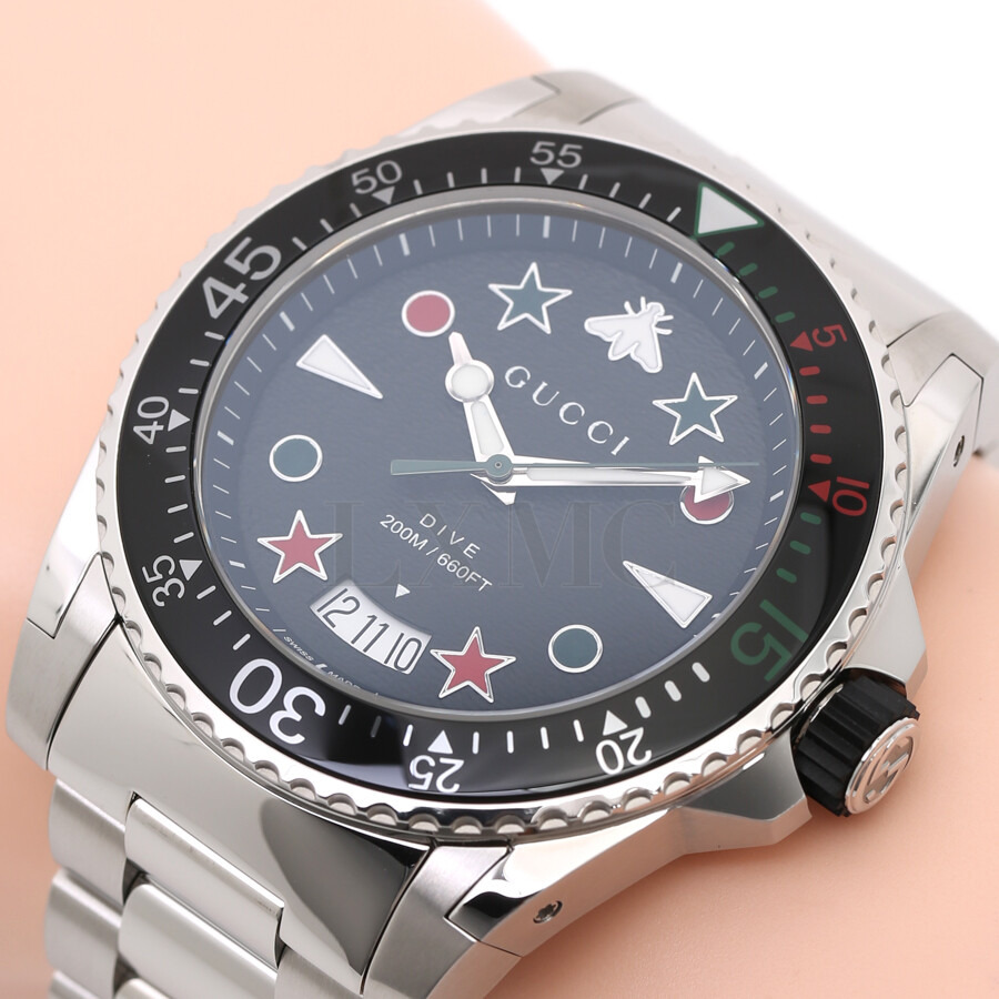 구찌 다이브 워치 블랙 스틸 시계 YA136221 백화점 보증서.