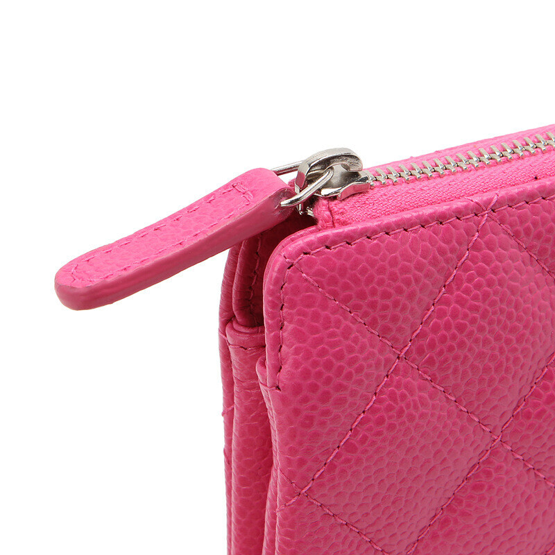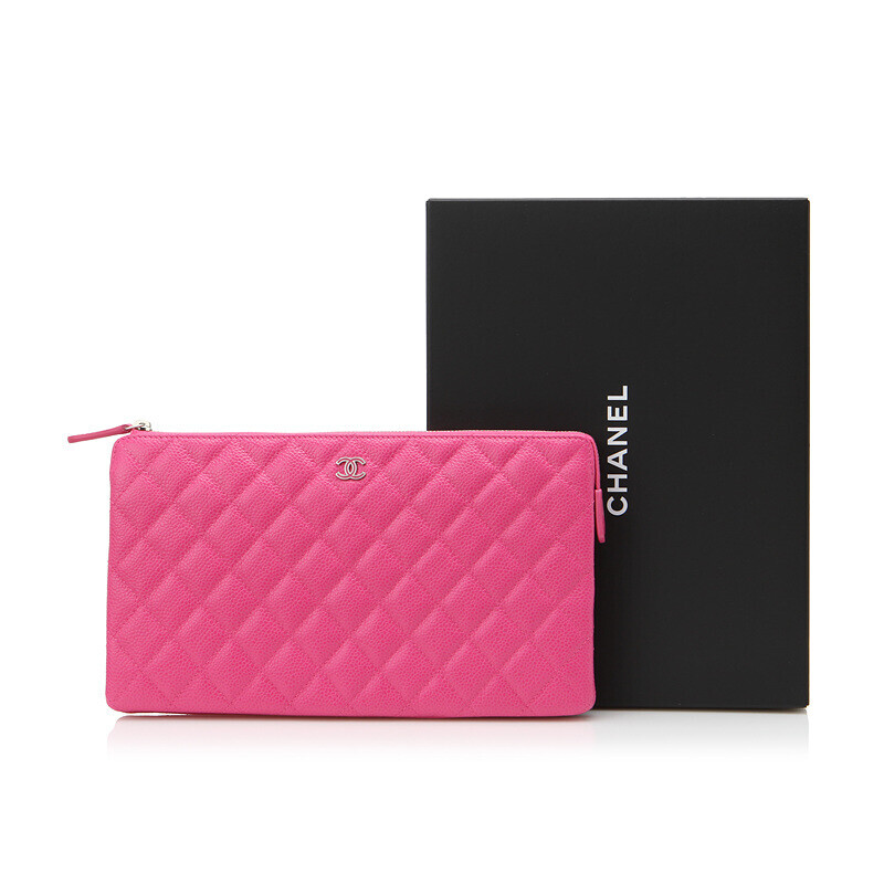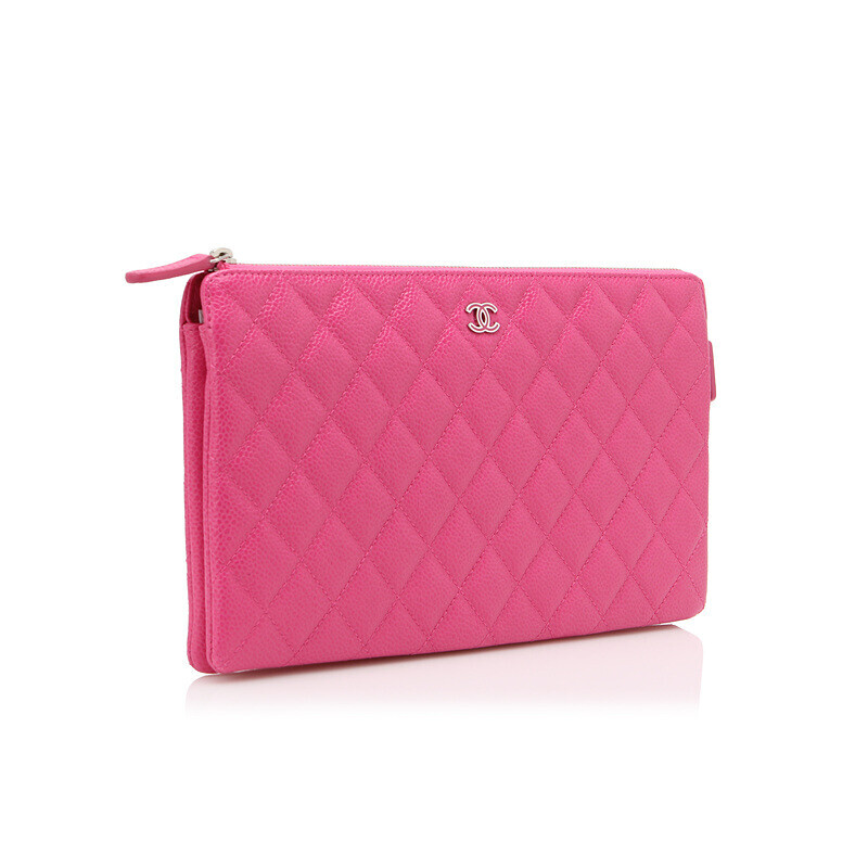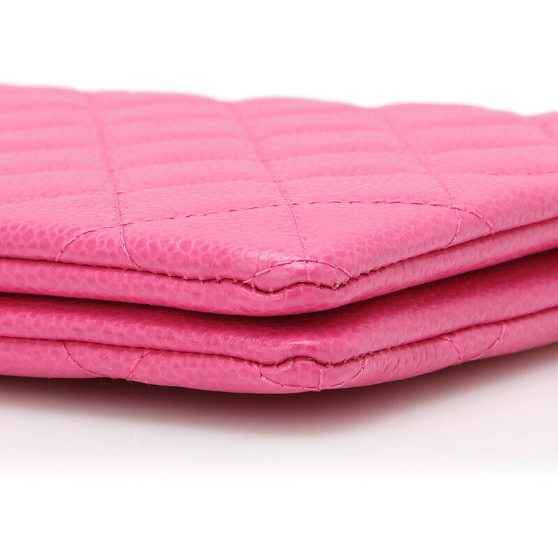 샤넬 클래식 캐비어 클러치 포쉐트 파우치 지갑 오거나이저 핑크 은장.