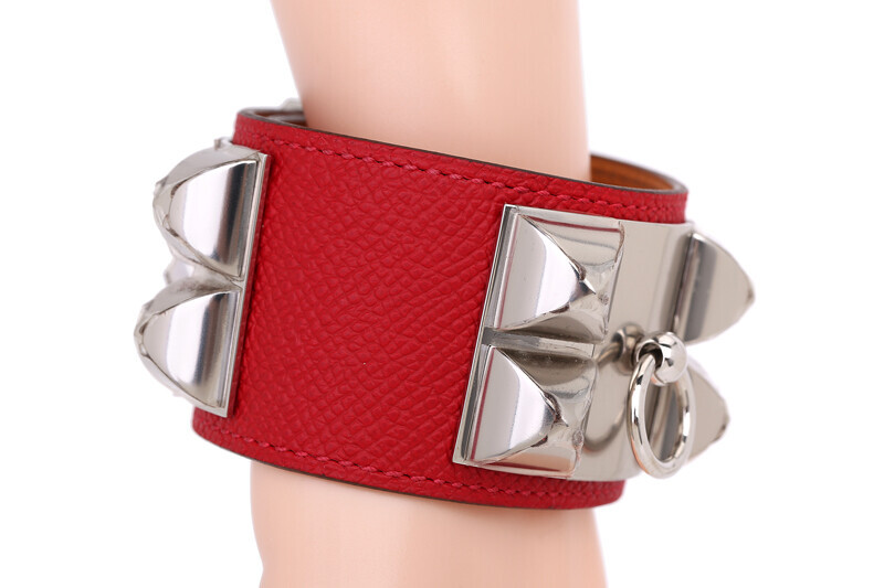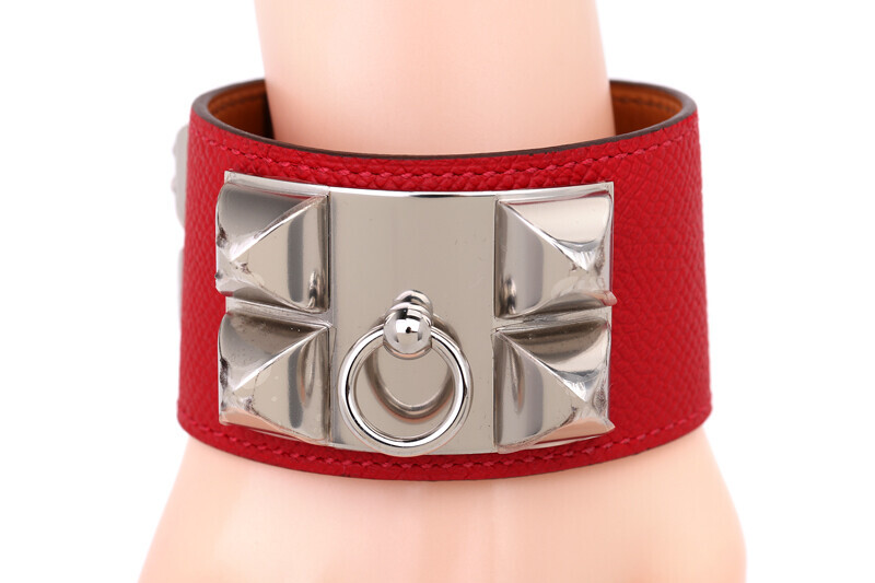 에르메스 클래식 메도르 팔찌 브레이슬릿 가죽팔찌 레드 은장 실버.