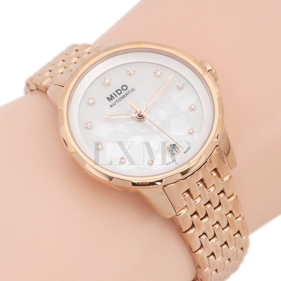 미도 레인플라워 로즈골드 마더오브펄 시계 다이아몬드 워치.