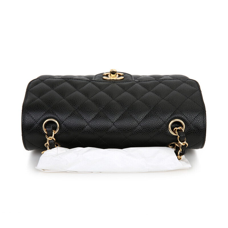 샤넬 클래식 캐비어 스몰 블랙 금장 골드 CC 플랩 스몰 A01113.