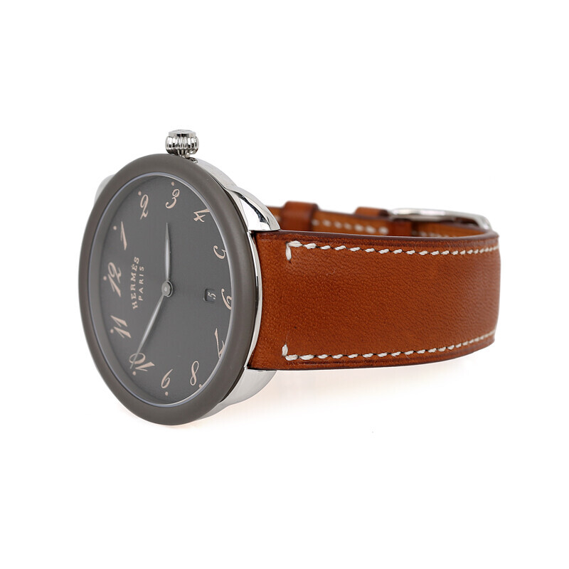 에르메스 한정판 아쏘 AR7Q Arceau 78 티타늄 워치 가죽밴드 시.