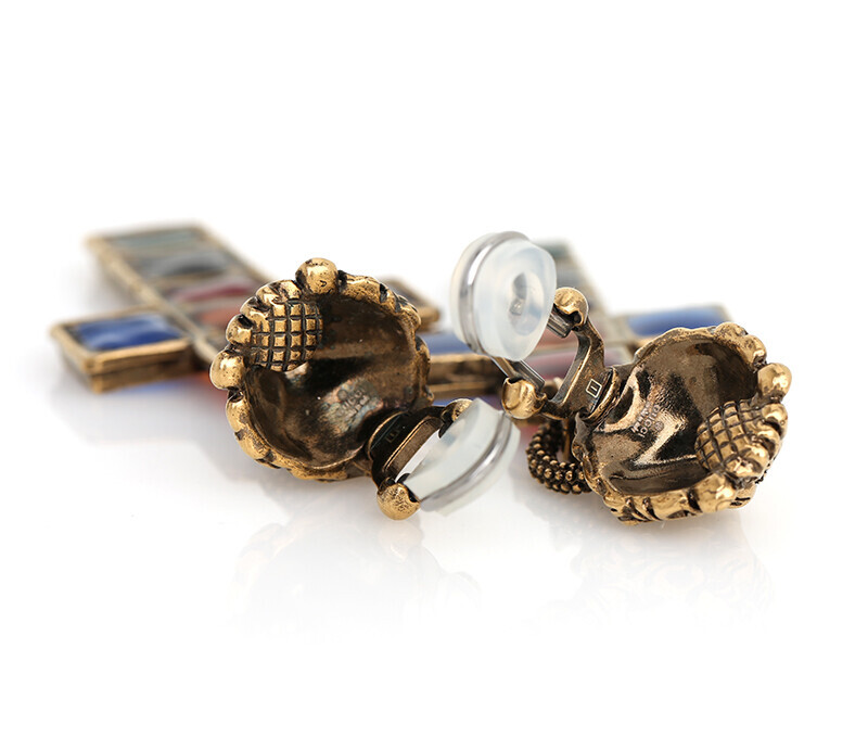 구찌 2018 HOLIDAY 한정판 라이언 헤드 십자가 귀걸이 앤틱골드.