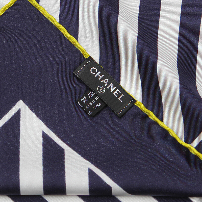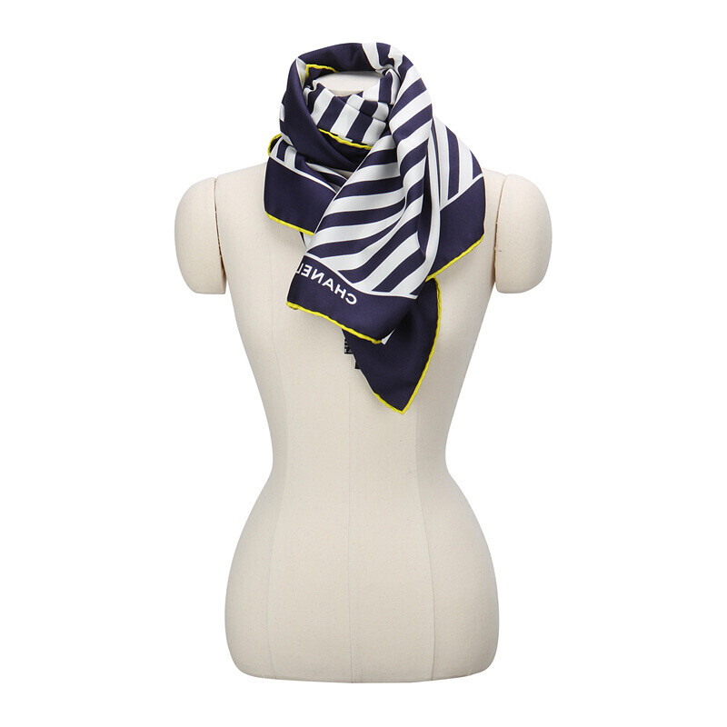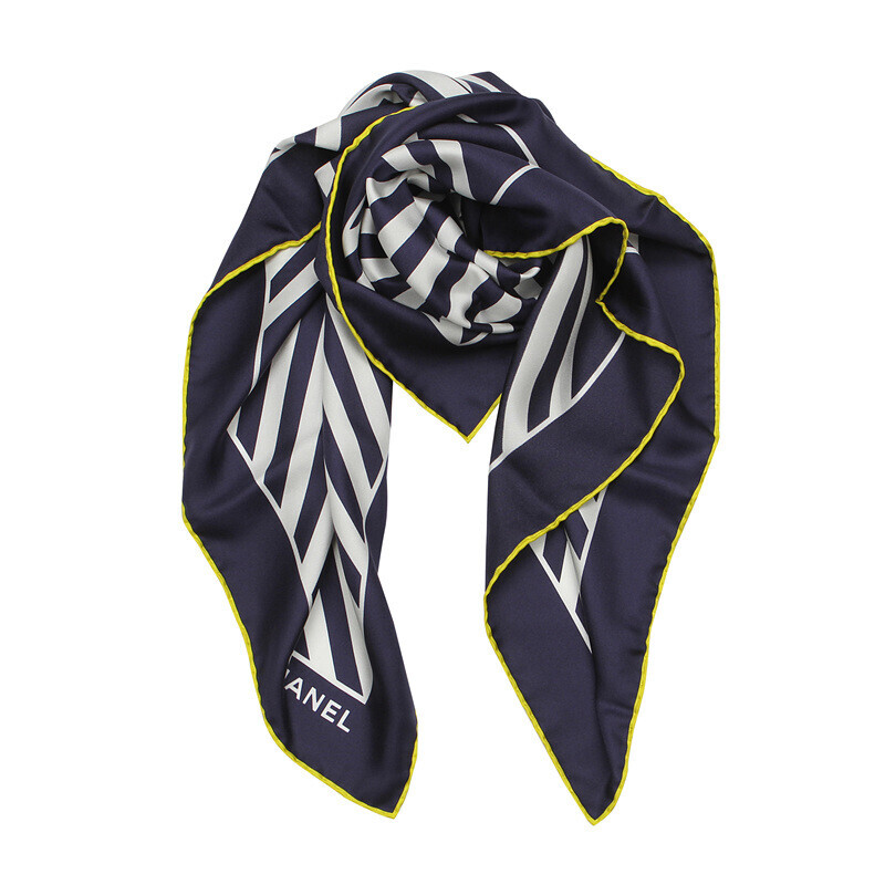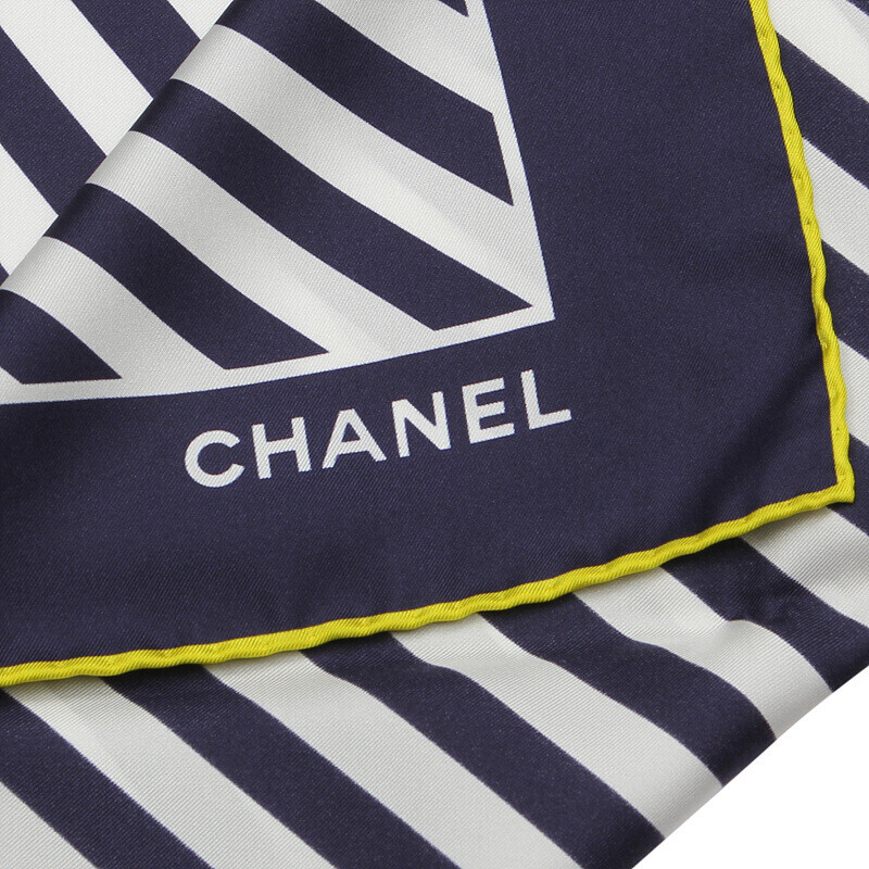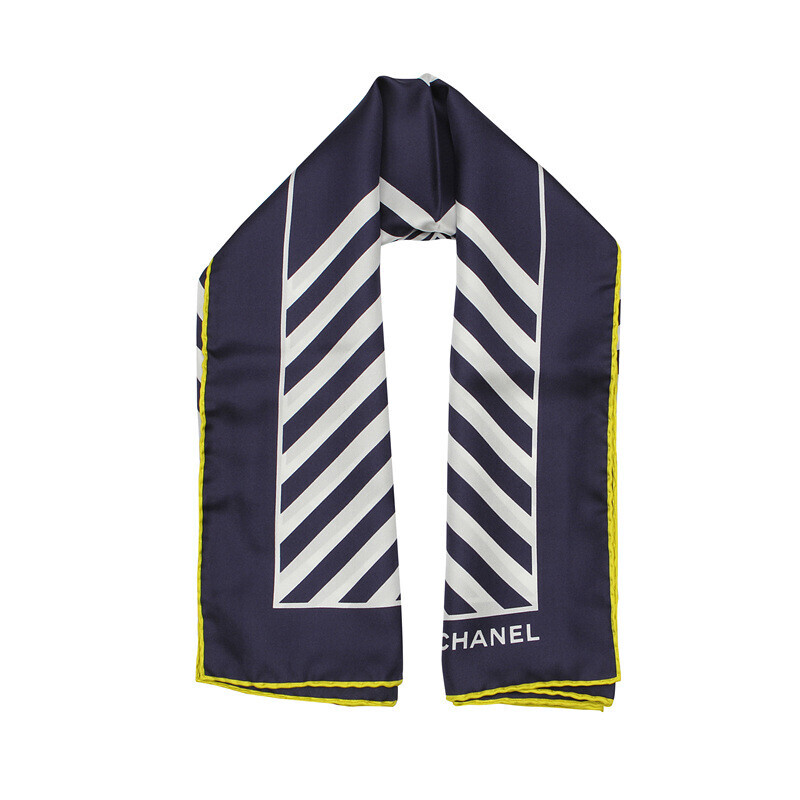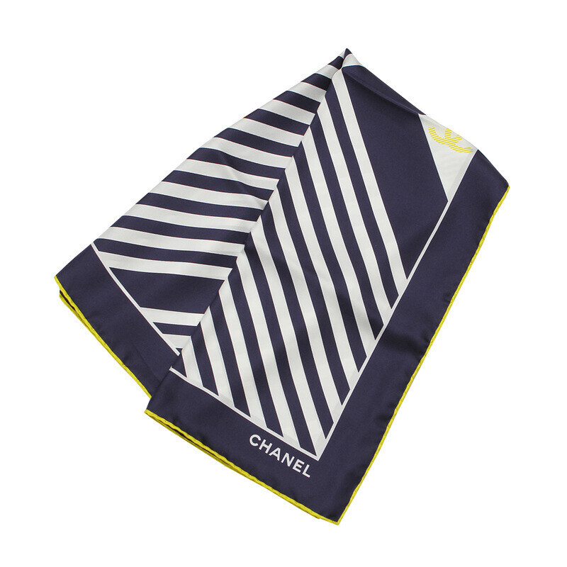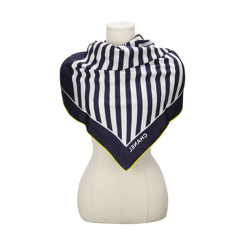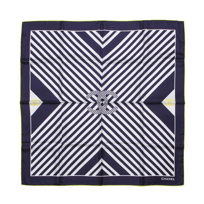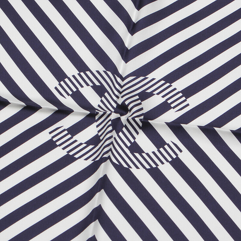 샤넬 클래식 스트라이프 쉐브론 CC 로고 실크 스카프 머플러 숄.