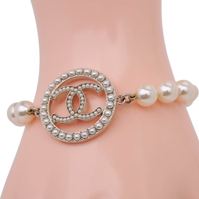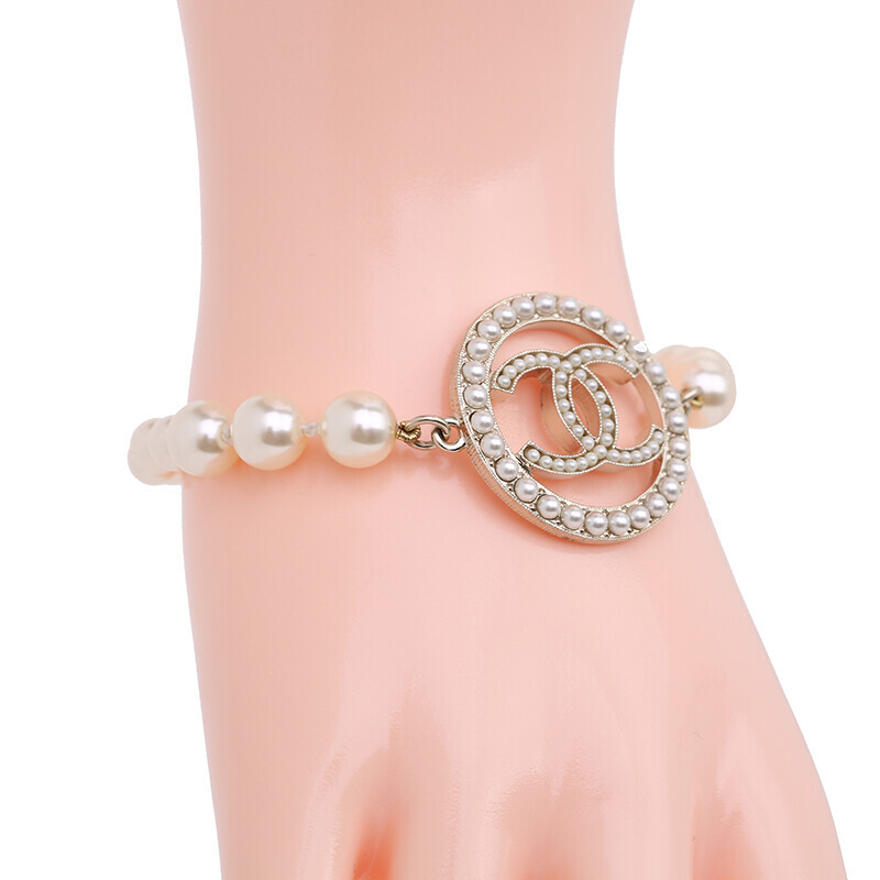 샤넬 CC 로고 진주 팔찌 금장 체인 브레이슬릿