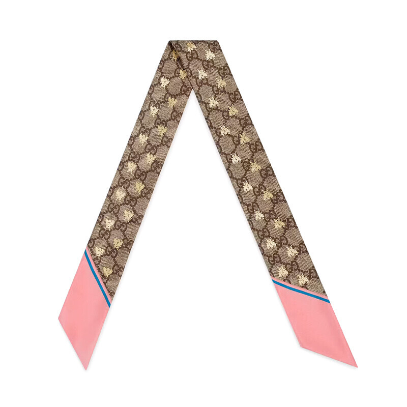 구찌 꿀벌 트윌리 실크 방도반다나 스카프 핑크 663716.