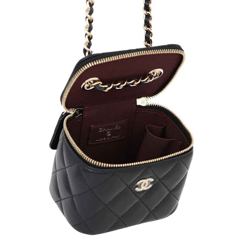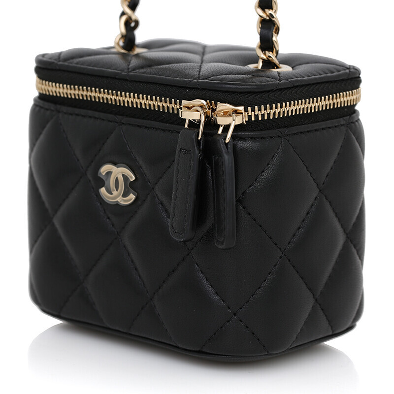 샤넬 클래식 램스킨 베니티 블랙 금장 CC 로고 체인크로스 미니백 체인백.