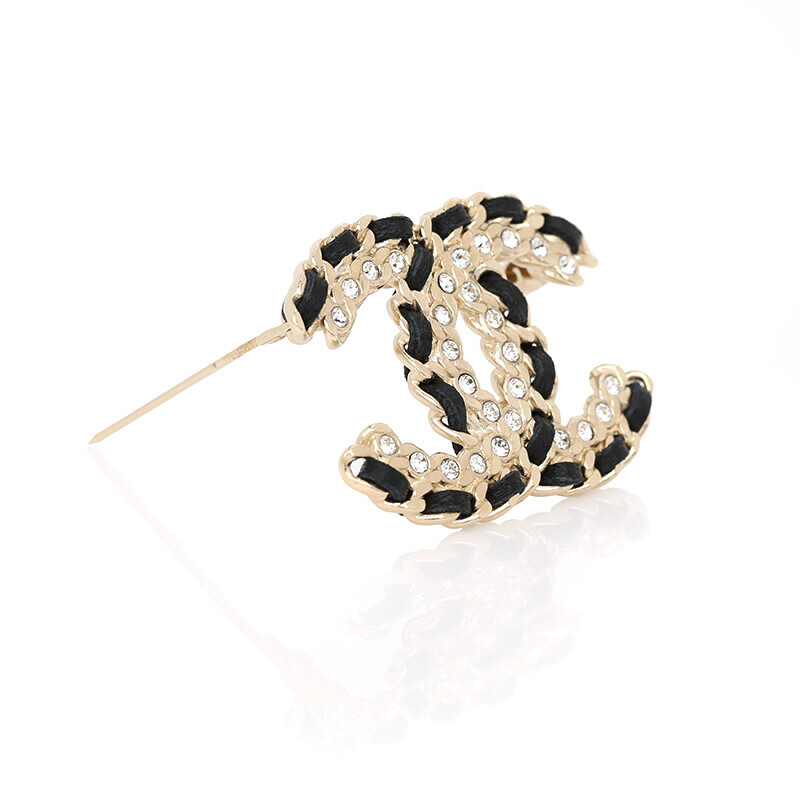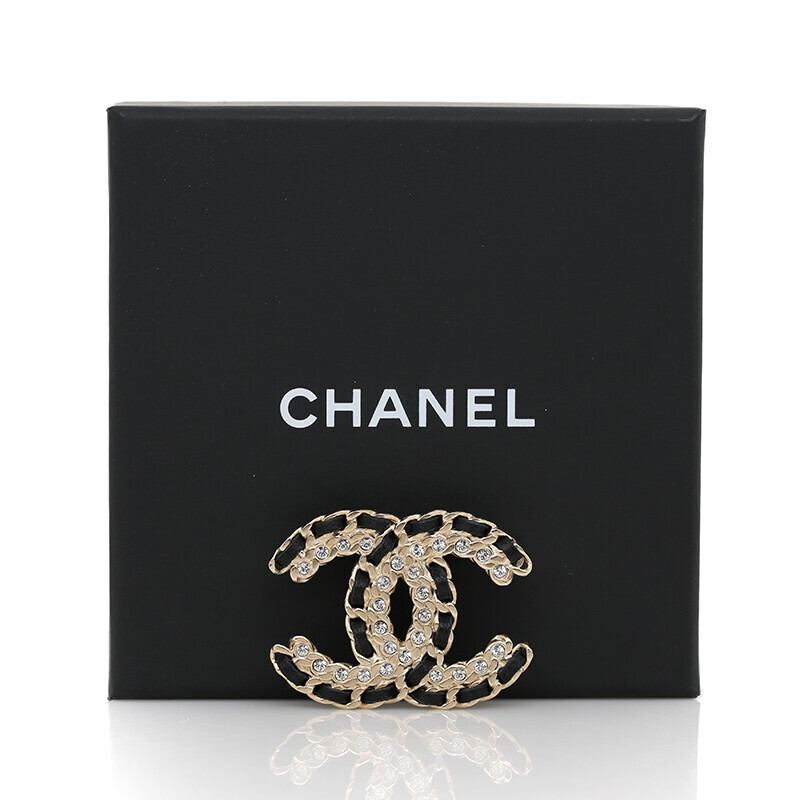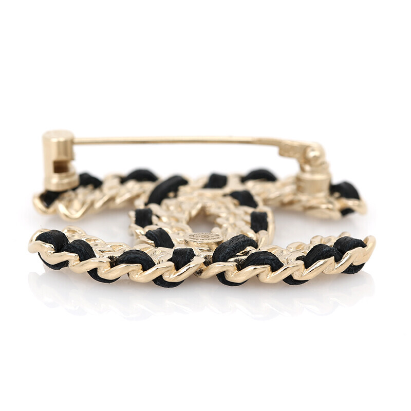 샤넬 CC 체인 브로치 골드 가죽 브롯치