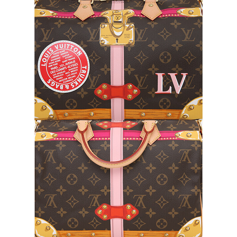 루이비통 리미티드 트렁크 모노그램 반들리에 스피디 M41386 한정 토트.