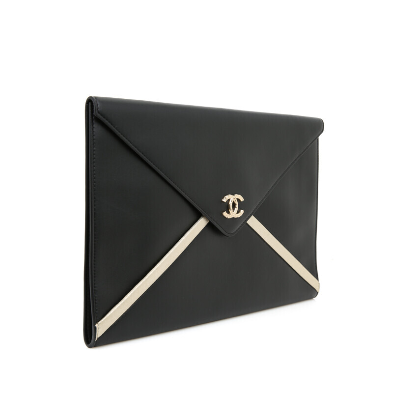 샤넬 한정판 A82502 엔벨롭 클러치 편지봉투 금장 블랙 파우치.