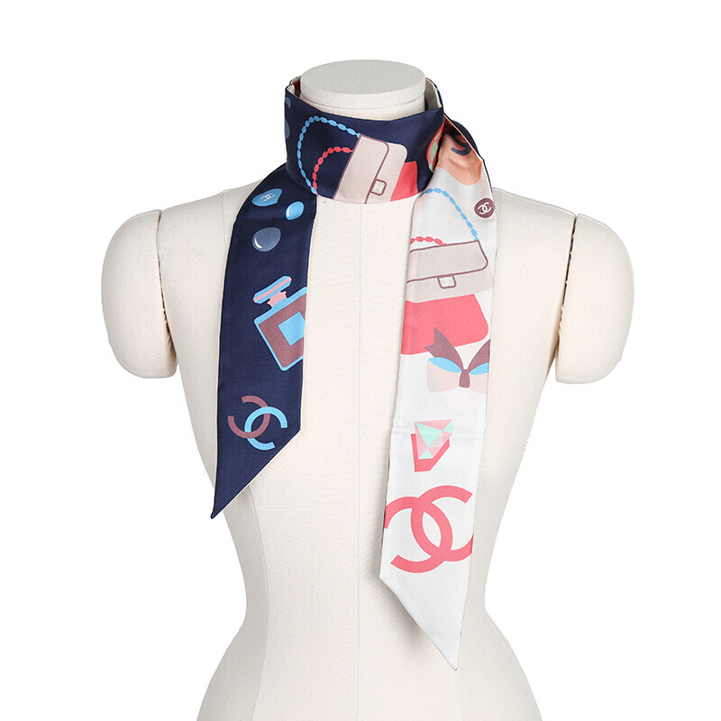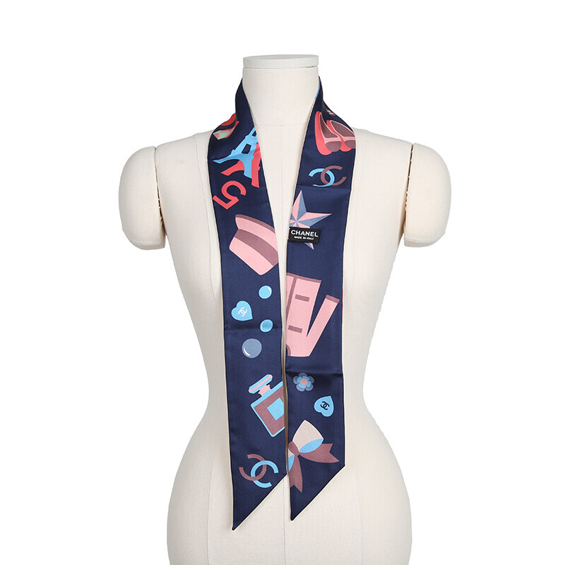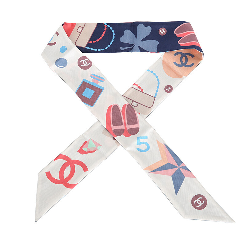 샤넬 클래식 스카프 방도 반다나 실크 헤어밴드 머플러.