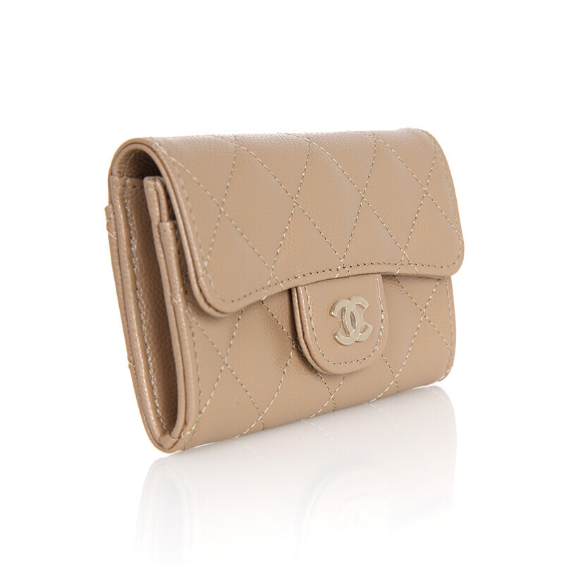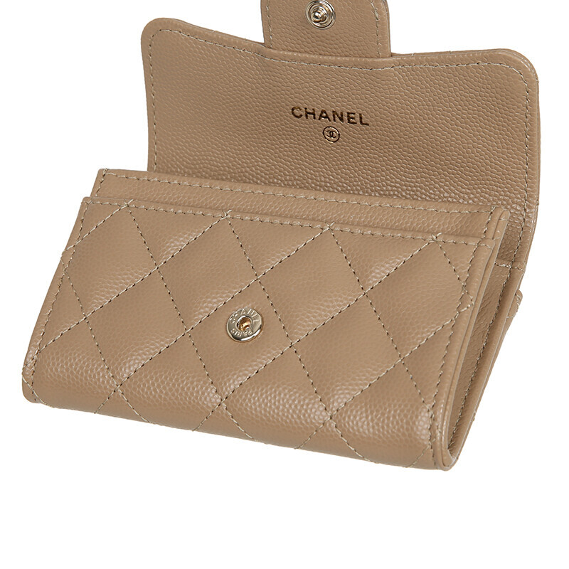 샤넬 클래식 캐비어 카드지갑 플랩 미니지갑 AP0214 베이지 금장.