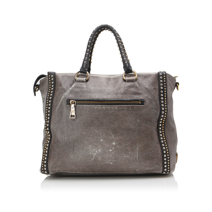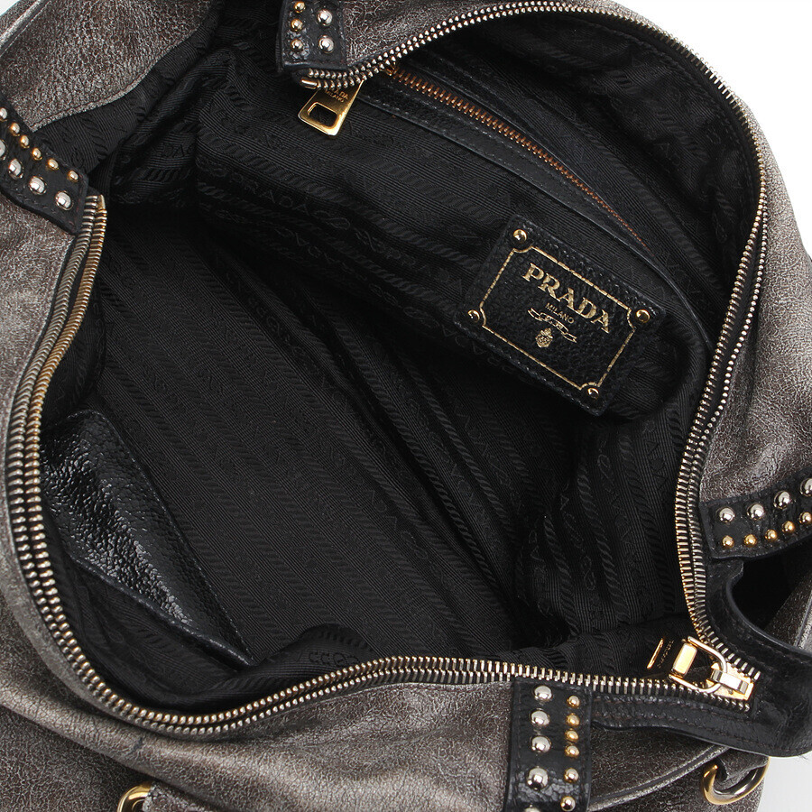프라다의 화려한 실버와 골드 스터드 장식의 포인트 아이템입니다