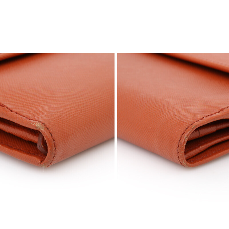 프라다 사피아노 장지갑 1M1133 오렌지컬러 3단 플랩 지갑.