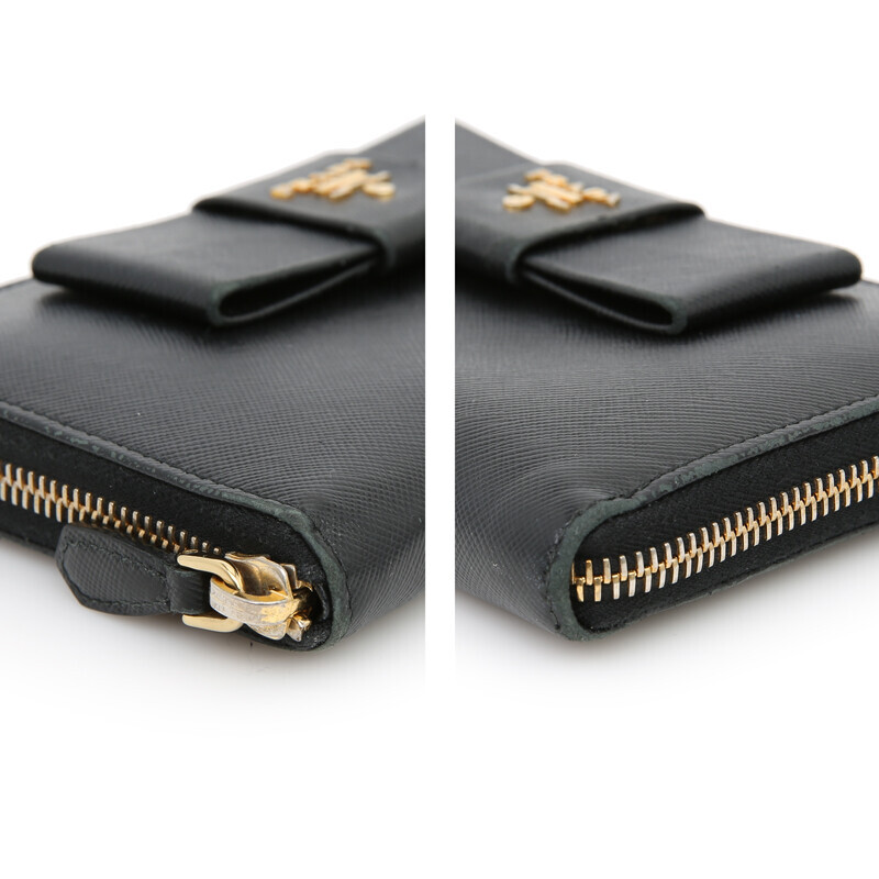 프라다 1M0506 사피아노 리본 블랙 여성 장지갑 보증서 지퍼지갑 지피.