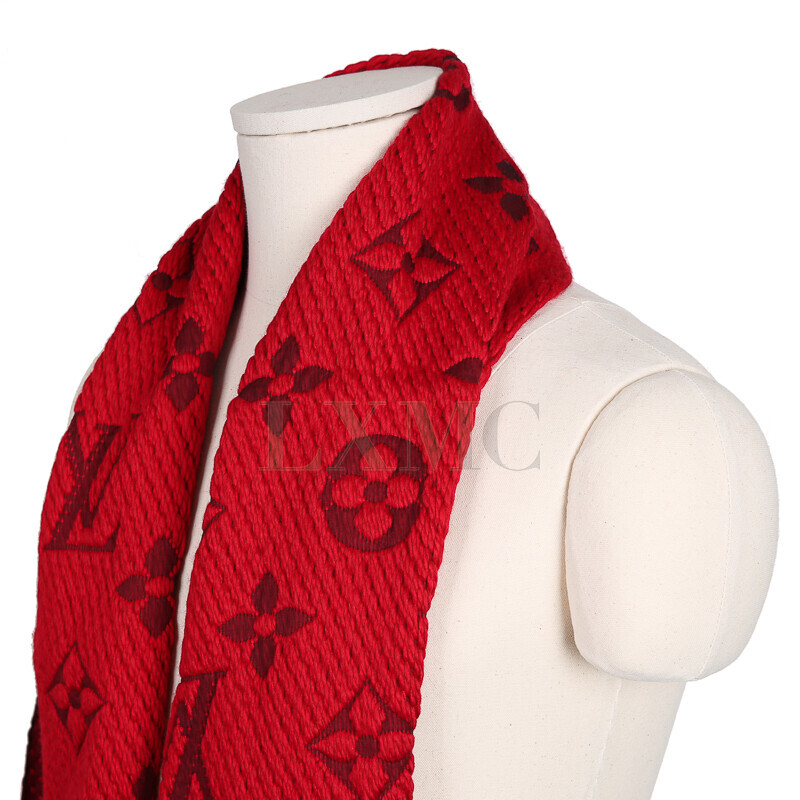 루이비통 클래식 머플러 M72432 로고마니아 스카프 루비 레드