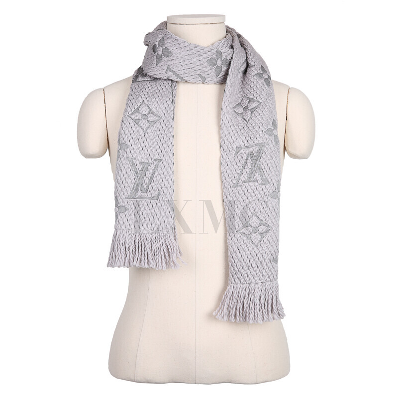 루이비통 클래식 머플러 M74742 로고마니아 스카프 펄 그레이.