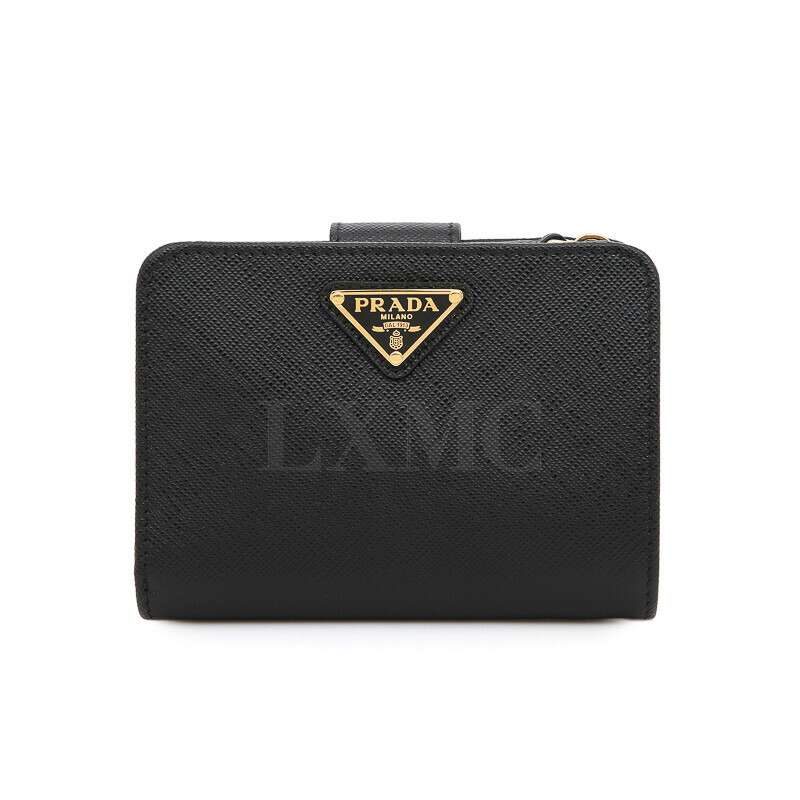 프라다 1ML018 사피아노 블랙 금장 지갑 여성지갑 중지갑 삼각로고.