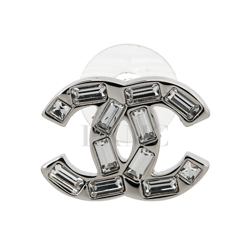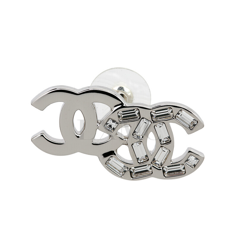 샤넬 메탈 스트라스 언발란스 귀걸이 더블이어링 CC 실버 트윈로고.