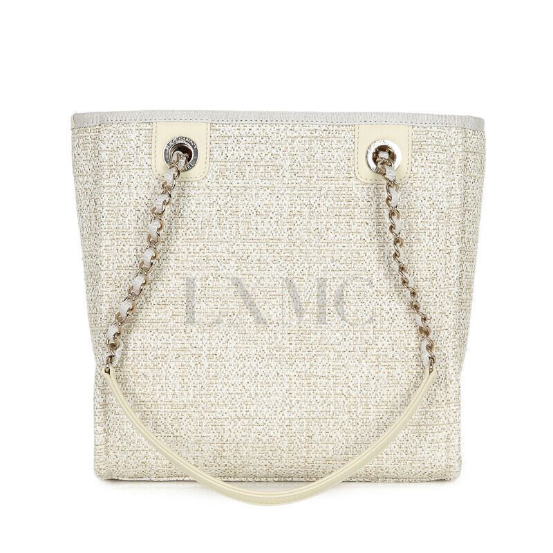 샤넬 쇼라인 아이보리 도빌 쇼퍼백 체인백 숄더 트위드 금장 체인토트.